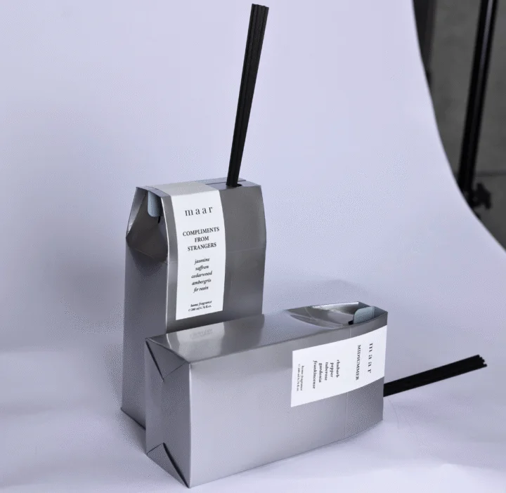 The thoughtful production of maar products takes place in two locations. Our fragrances themselves are created in collaboration with renowned Swiss perfumery houses. All other stages—testing, selection, perfume maturation, blending with alcohol or oil, home fragrance aging, product bottling—are done in Lithuania, with many steps carried out by our own hands. For packaging design and production, as well as body care product manufacturing, we also collaborate with partners in Lithuania.